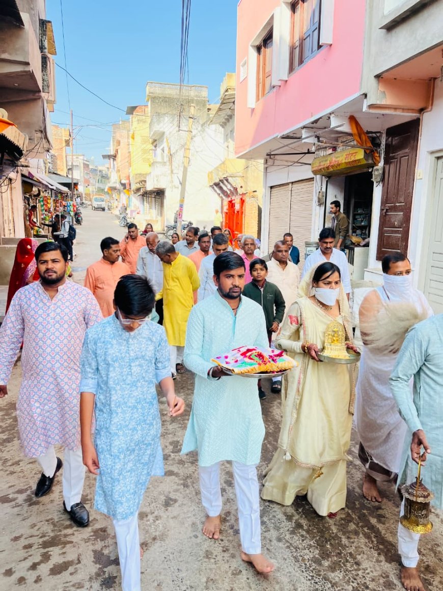 जैन समाज मंत्री सागर मल सुराणा ने बताया कि कार्यक्रम का शुभारंभ प्रातः बैण्ड-बाजों की स्वर लहरियों के साथ निकली भव्य शोभायात्रा से हुआ। कपिल मोदी द्वारा नई ध्वजा एवं बबिता मोदी द्वारा परमात्मा शान्तिनाथ को पात्र में धारण कर नगर के प्रमुख मार्गों से शोभायात्रा निकाली गई।
