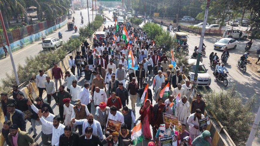 अरावली बचाओ व मनरेगा के नाम परिवर्तन के विरोध में कांग्रेस का पैदल मार्च, राष्ट्रपति के नाम ज्ञापन सौंपा