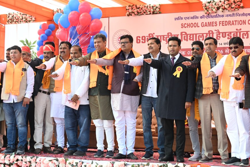 राजस्थान की शौर्य, संस्कृति और बलिदान की प्रतीक ऐतिहासिक धरती चित्तौड़गढ़ में एक भारत-श्रेष्ठ भारत के संदेश के साथ 69वीं राष्ट्रीय विद्यालय स्तरीय हैंडबॉल प्रतियोगिता (अंडर-14) का भव्य शुभारंभ हुआ।