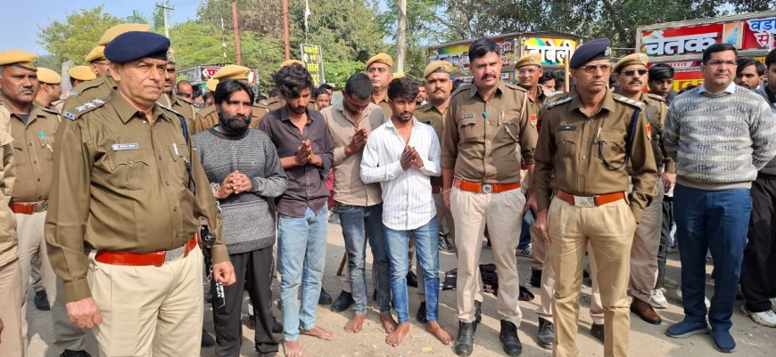हफ्ता वसूली मामले में पुलिस का सख्त संदेश: उसी चौराहे पर निकाला आरोपियों का जुलूस