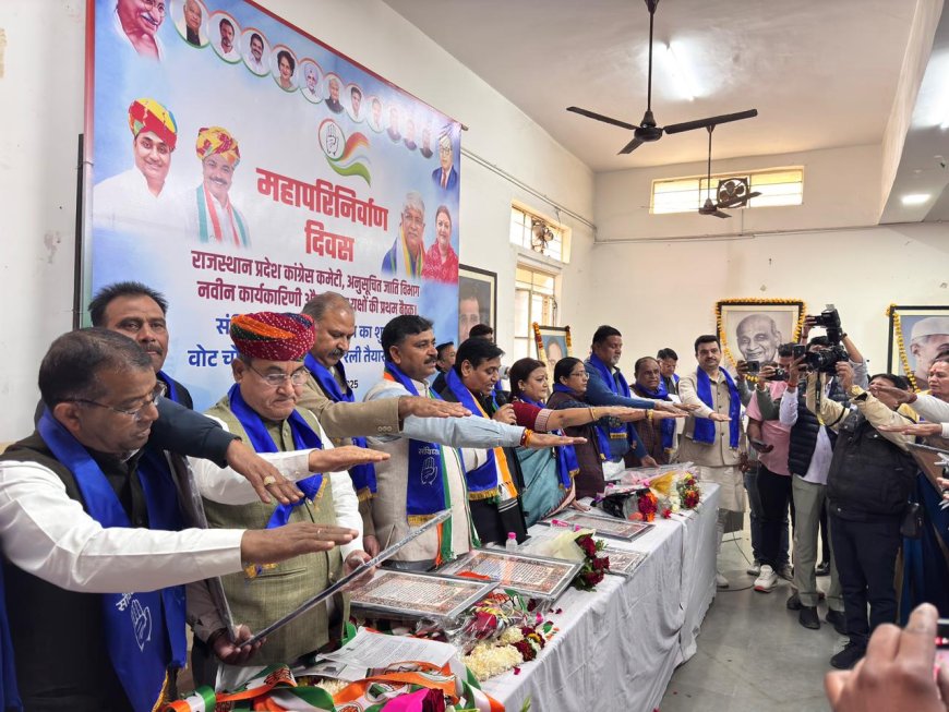 इस दौरान सभी नवनियुक्त पदाधिकारियों का कांग्रेस प्रदेशाध्यक्ष गोविन्दसिंह डोटासरा, टीकाराम जूली द्वारा संविधान की शपथ दिलाते हुए अभिनन्दन किया। अजा प्रदेश अध्यक्ष ममता भूपेश बैरवा द्वारा सभी का स्वागत किया गया और 14 दिसम्बर को दिल्ली में आयोजित महारैली को लेकर दिशा निर्देश देते हुए अधिकाधिक संख्या में भाग लेने के आदेश दिये।