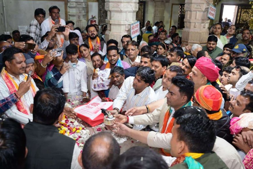 चित्तौड़गढ़। चित्तौड़गढ़ विधायक चंद्रभान सिंह आक्या की विधानसभा चुनाव जीत की खुशी में समर्थकों द्वारा मन्नत उतारने का क्रम दो वर्ष बाद भी लगातार जारी है। इसी श्रृंखला में विधायक आक्या के समर्थक रमेश चन्द्र गुर्जर पुत्र उदय लाल गुर्जर ने सोमवार को अपने निवास स्थान से श्री सांवलियाजी मंदिर तक श्रद्धाभाव से लौटन यात्रा निकाली।
